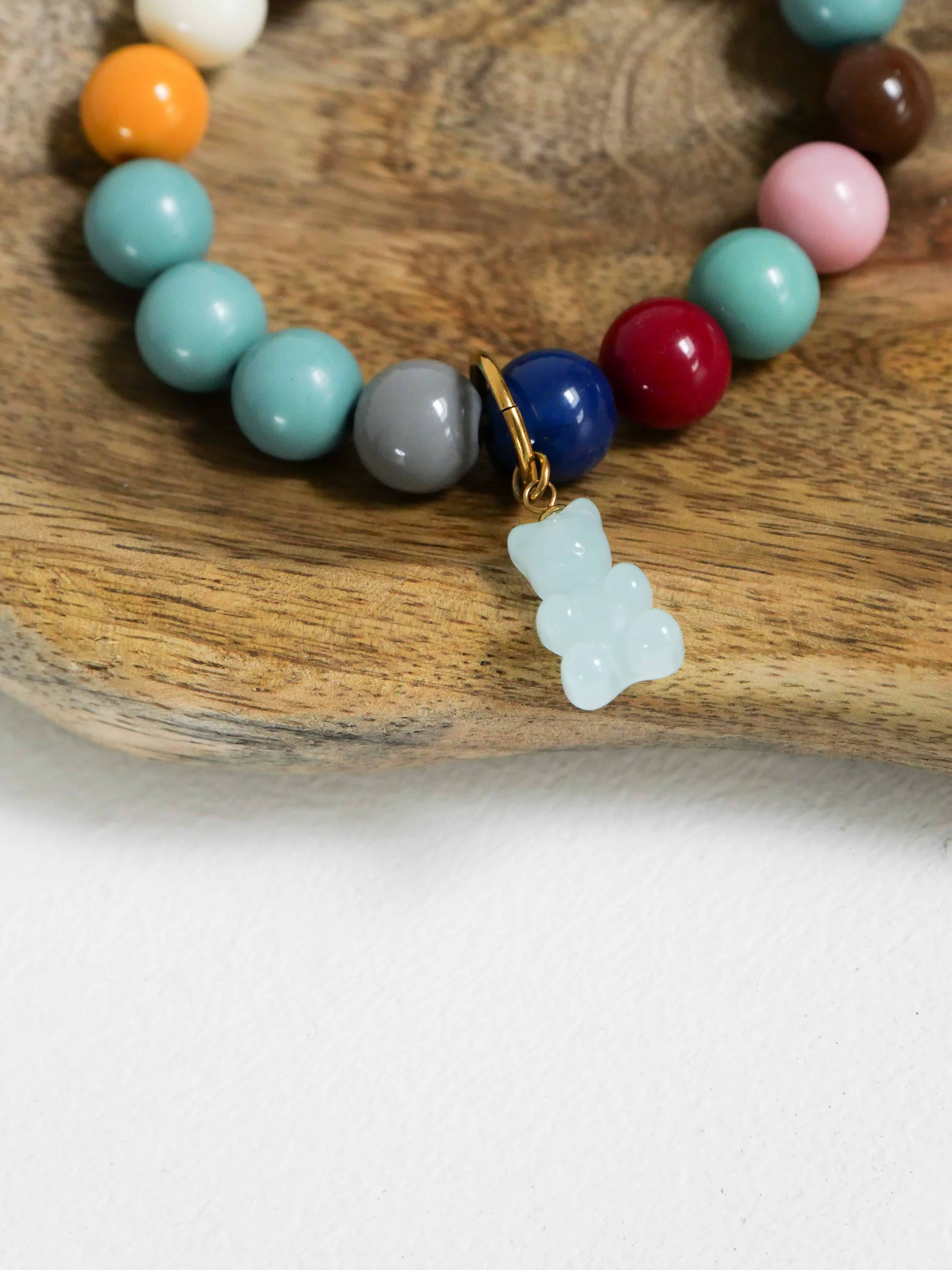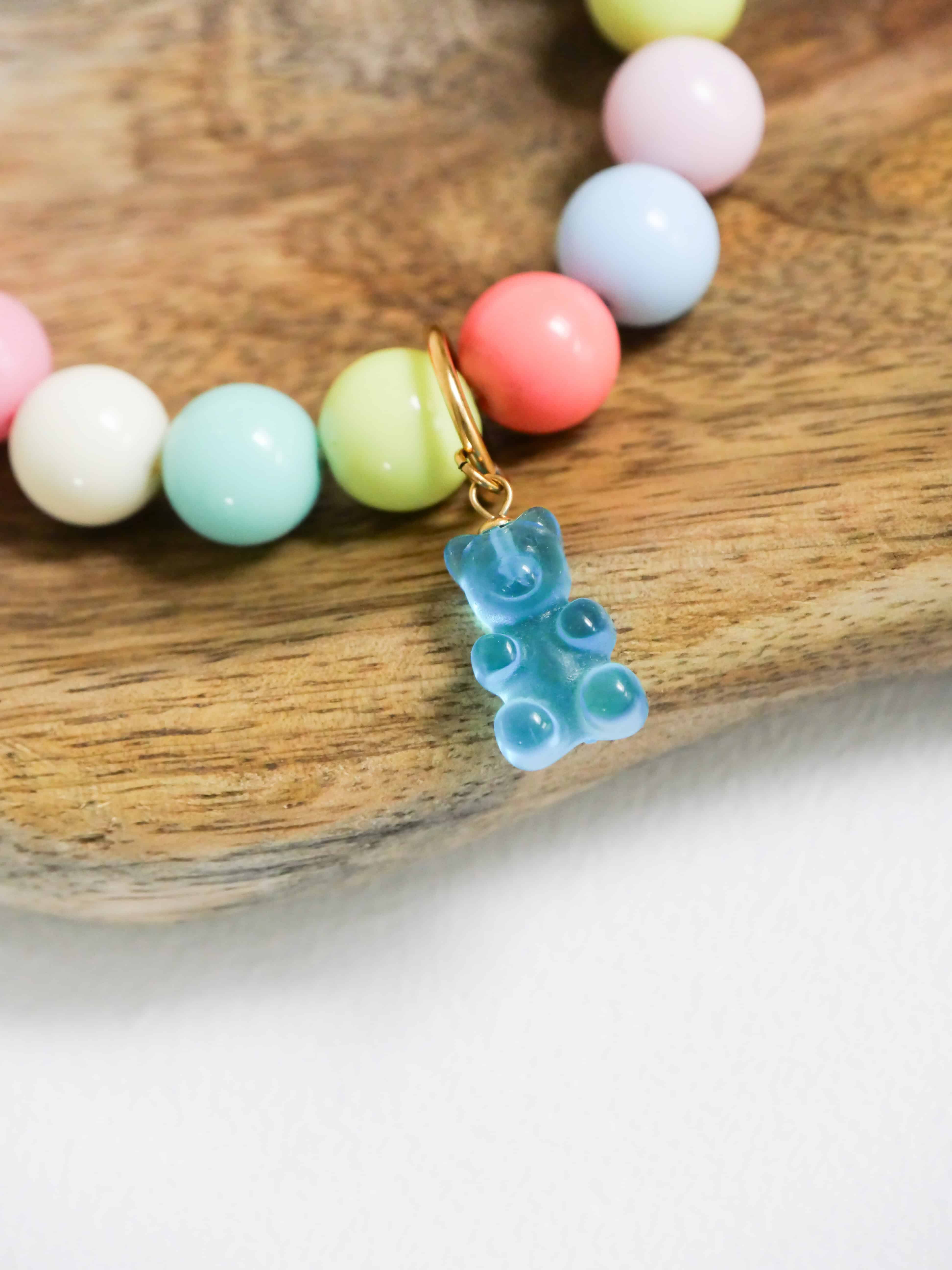 Perles pastel et ourson bleu. Idéal pour mettre en avant votre bronzage !